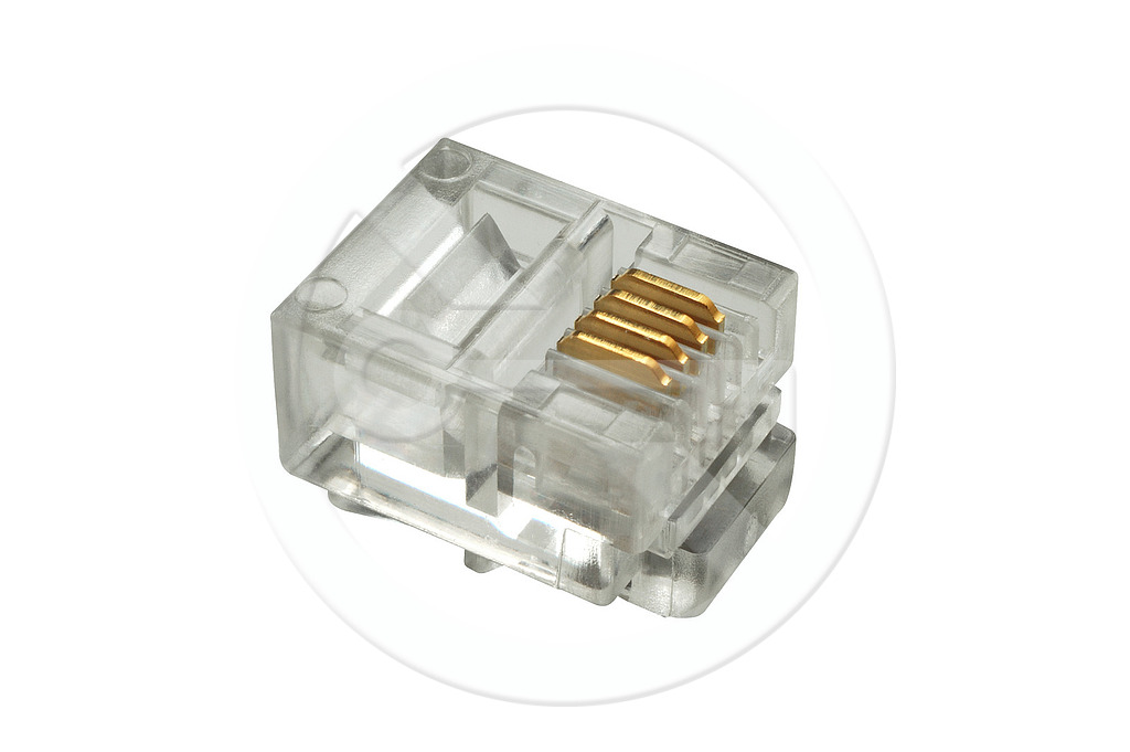 Nestíněný konektor RJ11 pro připojení telekomunikačních zařízení, 6p4c.