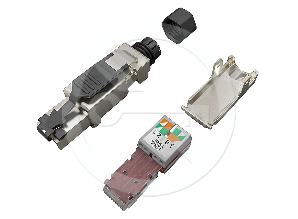 Vysoce kvalitní samořezný úhlový konektor RJ45 CAT6A pro vodič typu drát i licna vhodný pro STP ikabeláž.