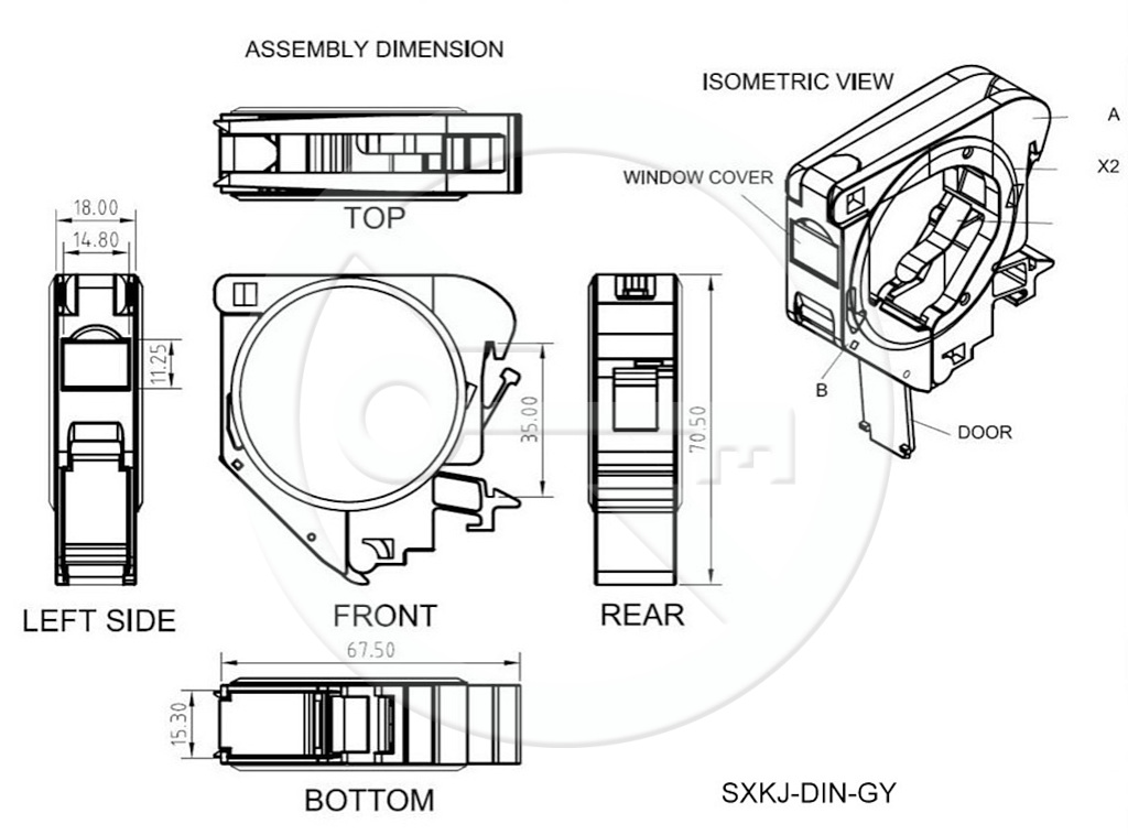 • POZOR: tento držák na DIN lištu, co se rozměrů týče, přesahuje do hloubky rozměry jističe - tj. není zcela rozměrově kompatibilní s uzavřenými jističovými skříněmi.