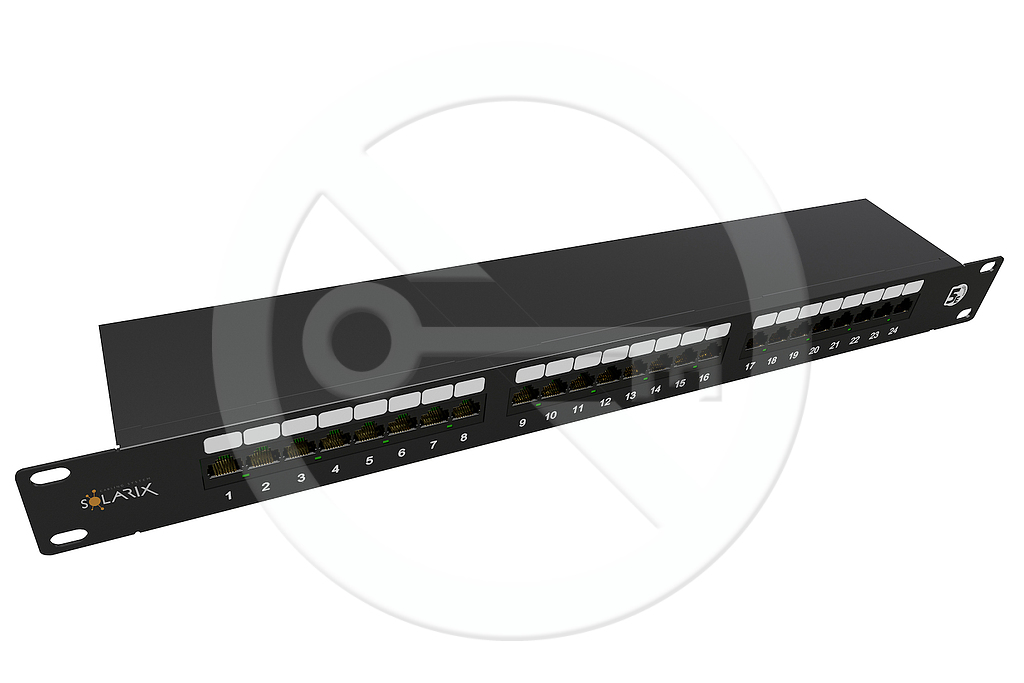 Produkt 19" patch panel Solarix 24 x RJ45 CAT5E STP 1U SX24-5E-STP-BK-N - Solarix - Patch panely