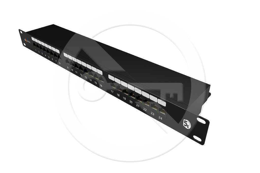 Stíněný patch panel CAT5E 24 portů, černý.