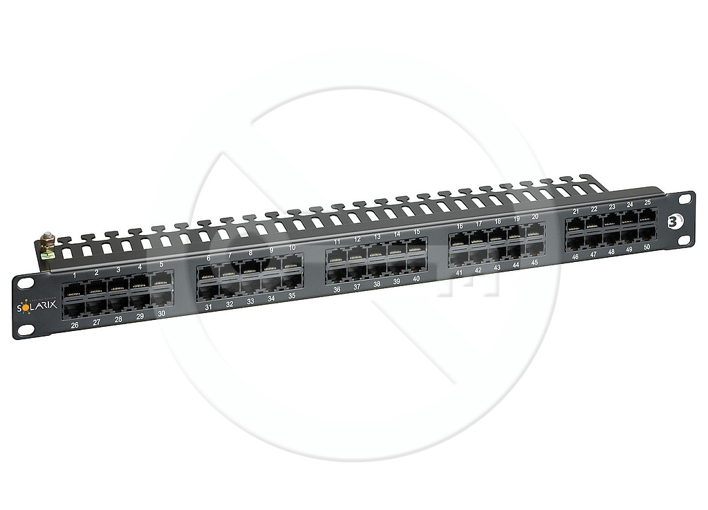 Solarix ISDN patch panel SX50-ISDN-BK je kvalitní telefonní panel určený pro tu část strukturované kabeláže, která slouží pro připojení uživatelských pracovišť k telefonní ústředně. Panel je osazen 50 porty typu RJ45 a zakončovacími moduly s duální svorkovnicí 110/Krone. Součástí panelu je vyvazovací lišta, která umožňuje přehledné uspořádání a pevné uchycení telefonního kabelu přímo k tělu patch panelu. Přednostmi ISDN panelů Solarix je jejich vysoká spolehlivost, životnost a především jednoduchá instalace. Panely splňují všechny požadavky definované pro kategorii 3. Barva ISDN patch panelů Solarix je černá. Velikost v datovém rozvaděči je 1U.