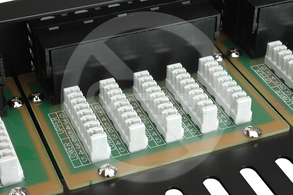 ISDN panel s 50 porty určený pro připojení uživatelských pracovišť k telefonní ústředně.