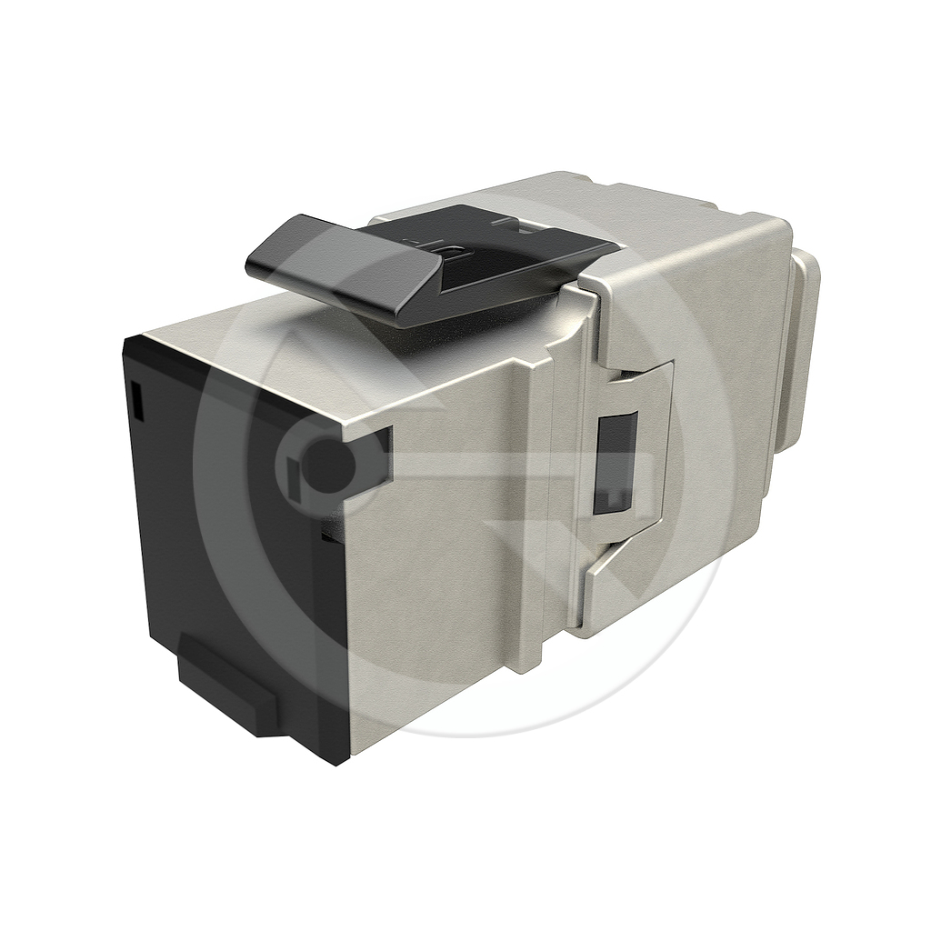 Rychlozařezávací stíněný keystone CAT6A RJ45 s Component Level a 4PPoE certifikací.