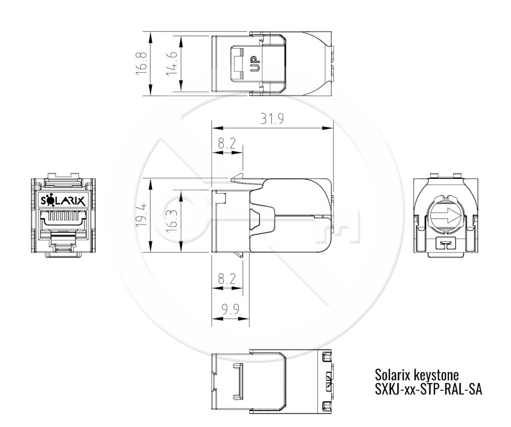 Produkt Samořezný keystone Solarix CAT6A STP SXKJ-10G-STP-RAL-SA, RAL FIT moduly, GROUND LOCK, Component Level a 4PPoE certifikace - Solarix - Keystony