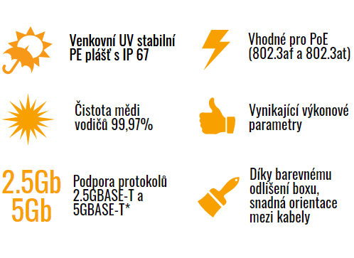 Klíčové vlastnosti kabelu Solarix kategorie 5E