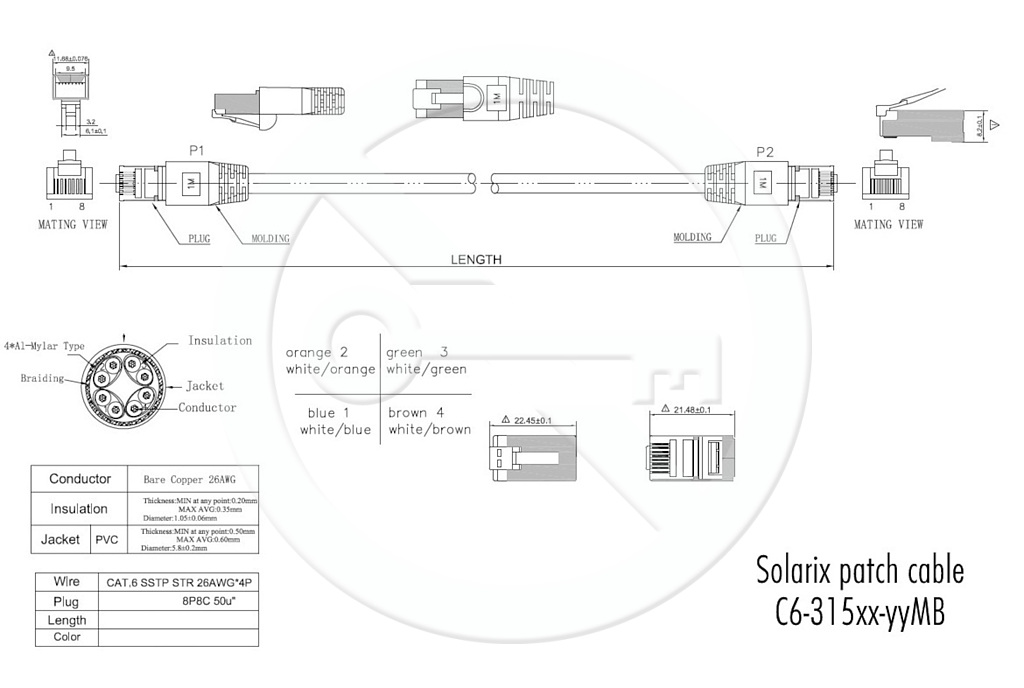 Patch kabely Solarix kategorie 6 jsou kvalitní propojovací kabely, které se vyznačují výbornými přenosovými vlastnostmi, spolehlivostí a dlouhou životností. Patch kabely jsou vyrobeny s tzv. litou ochranou, která zajišťuje pevné přilnutí konektoru k ochraně a také snižuje hodnoty přeslechu mezi jednotlivými páry v konektoru. Tato ochrana má speciální tenký design, který zaručuje, že lze tyto patch kabely použít v jakémkoliv patch panelu nebo aktivním prvku, a to i u zařízení s velkou hustotou portů. K výrobě patch kabelů jsou použity kvalitní konektory na licnu s krytím kontaktů 50 µ zlata; velikost vodičů (lanka) je AWG 26. Patch kabely jsou nabízeny ve všech standardních délkách, v několika barvách a s několika typy ochrany (s tzv. snag-proof ochranou nebo bez ní). V případě stíněných patch kabelů je zajištěno dvojité stínění. Všechny patch kabely Solarix kategorie 6 jsou důkladně testovány a bez problému splňují požadavky mezinárodních standardů pro kategorii 6, včetně všech nejnovějších dodatků.