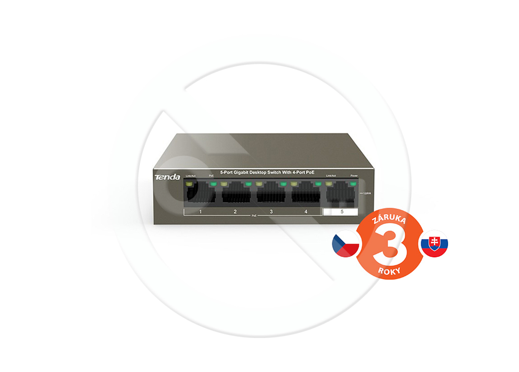 Produkt Tenda TEG1105P-4-63W 5xRJ45 Switch s 4xPoE 802.3af/at, 10/100/1000Mbps, celkem 63W,Kov - Tenda - Switche
