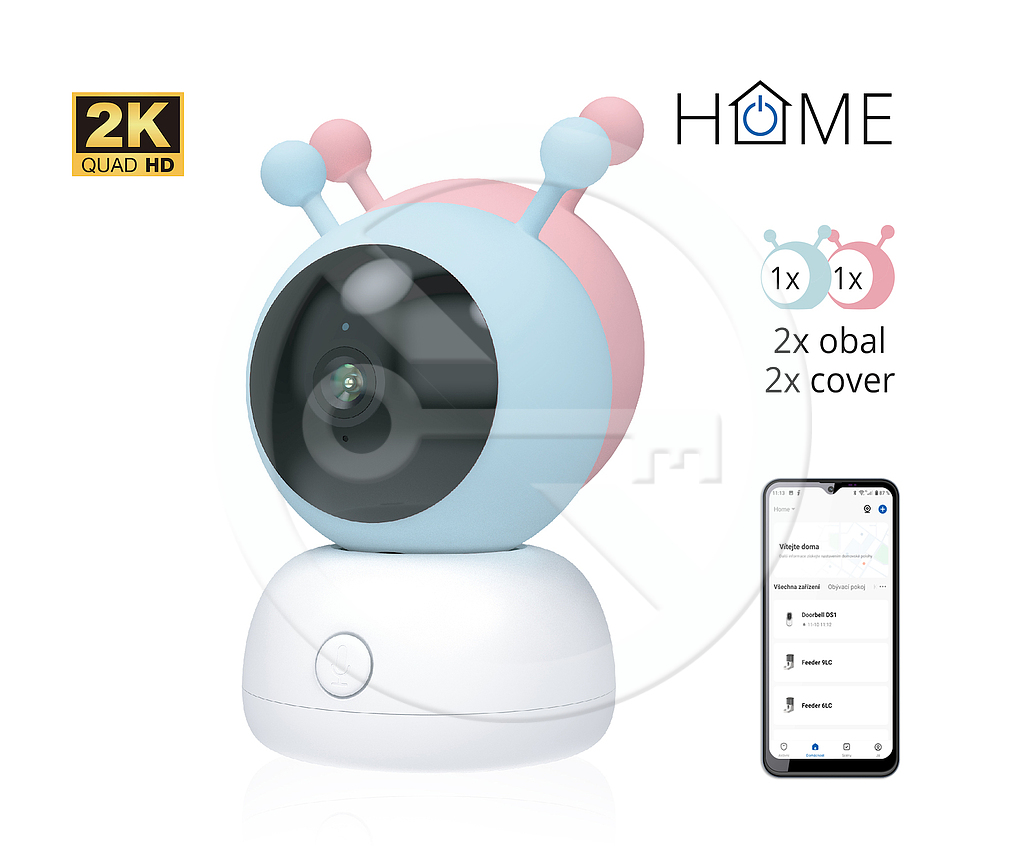 Bezdrátová vnitřní chůvička s teploměrem, vlhkoměrem, přehráváním meodií, přenosem zvuku a detekcí pláče, automatickým následováním a detekcí pohybu, dvěma vyměnitelnými kryty v balení, a vysokým rozlišením 2K (3 MPx) - iGET HOME Camera CS2 Baby