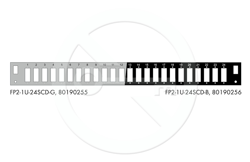 Čelo optické vany 1U pro 24 SC duplex BK s montážními otvory v2 FP2-1U-24SCD-B