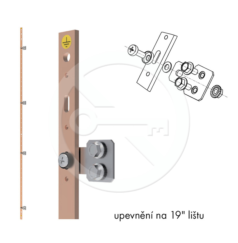 – 1 ks uzemňovací lišta včetně prvků pro montáž do skříně.