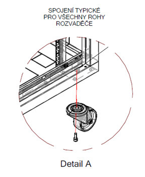 Rozvaděč s namontovanými kolečky zvýší svou výšku o 110 mm. Kombinovat kolečka s nivelačními nožkami nelze.