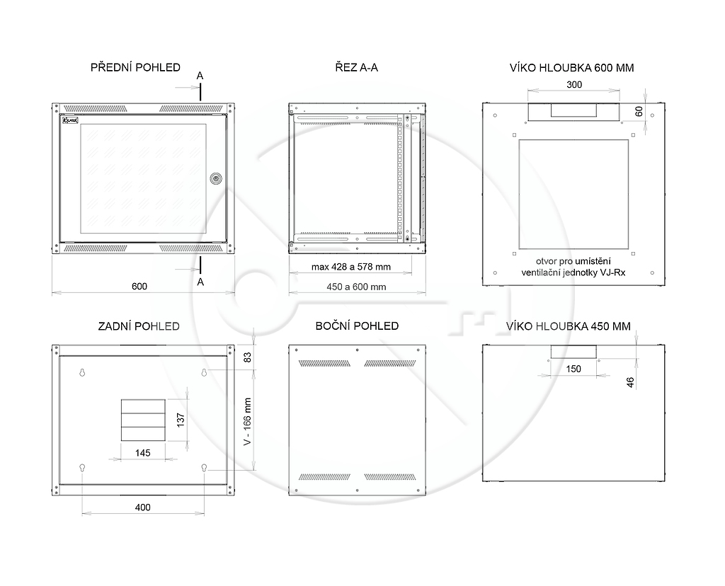 – vstupy pro kabeláž ve stropě, dně, zádech skříně v podobě vylamovacích otvorů