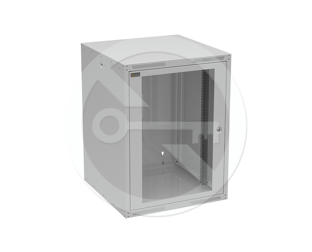 Nástěnný nýtovaný rozvaděč GrandN DUO 16U s prosklenými dveřmi, hloubka 600 mm