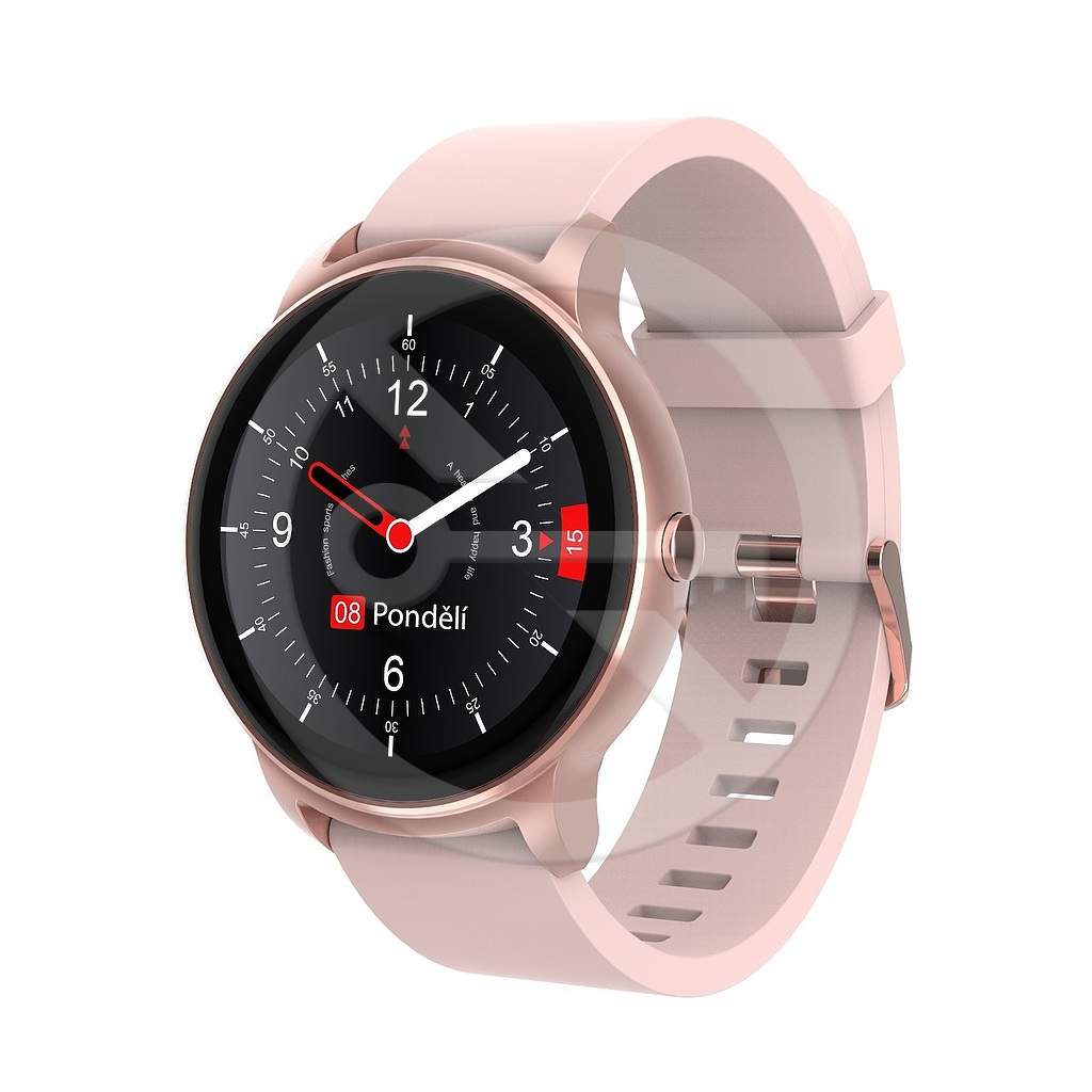1.3" LCD displej s rozlišením 240 x 240 px, IP68, výdrž až 7 dní, 200 mAh baterie, sportovní režimy, barva rose gold.