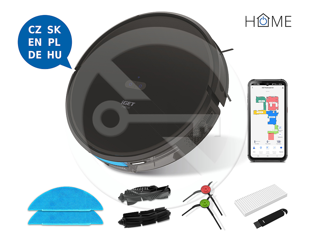 Vysavač iGET HOME Typhoon G1 můžete spárovat s mobilní aplikací iGET HOME, přes kterou upravíte proces vysávání tak, jak vyžaduje vaše domácnost. Umožňuje nastavení času vysávání, určení a výběr místností, nastavení kombinace vysávání a vytírání, ale také nastavení zakázaných zón. Aplikace má snadné ovládání v češtině a spárujete ji s vysavačem prostřednictvím domácí WiFi sítě.