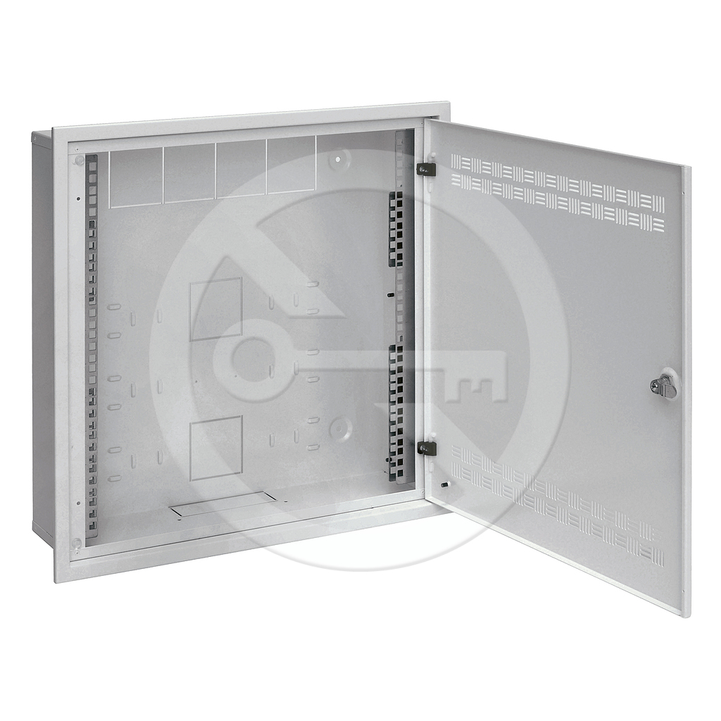 Rozvaděč SOHO LC-18 do zdi s lištami 2U, 4U a 11U, 550x550 šedá RAL7035 s rámečkem k zazdění