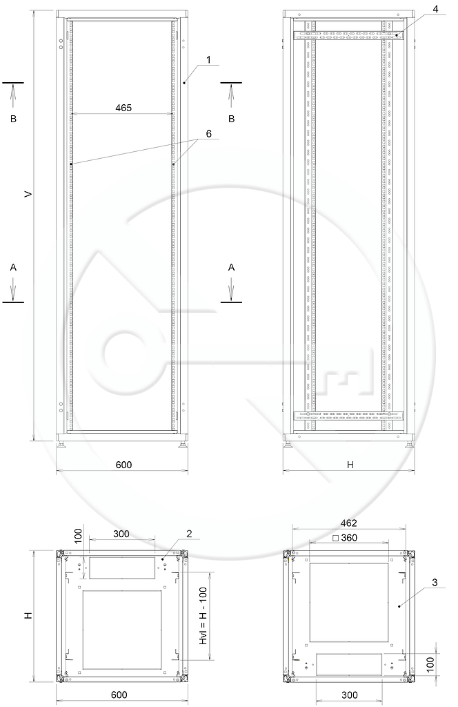 Rozvaděč obsahuje dva páry 19" vertikálních lišt s potiskem pro identifikaci výšky umístění montovaných zařízení. Konstrukce rozvaděče umožňuje měnit polohu vertikálních lišt ve směru hloubky rozvaděče.