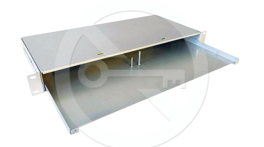 Optická vana s výsuvnou policí hliník 1U bez čela FOS-1U-ALU