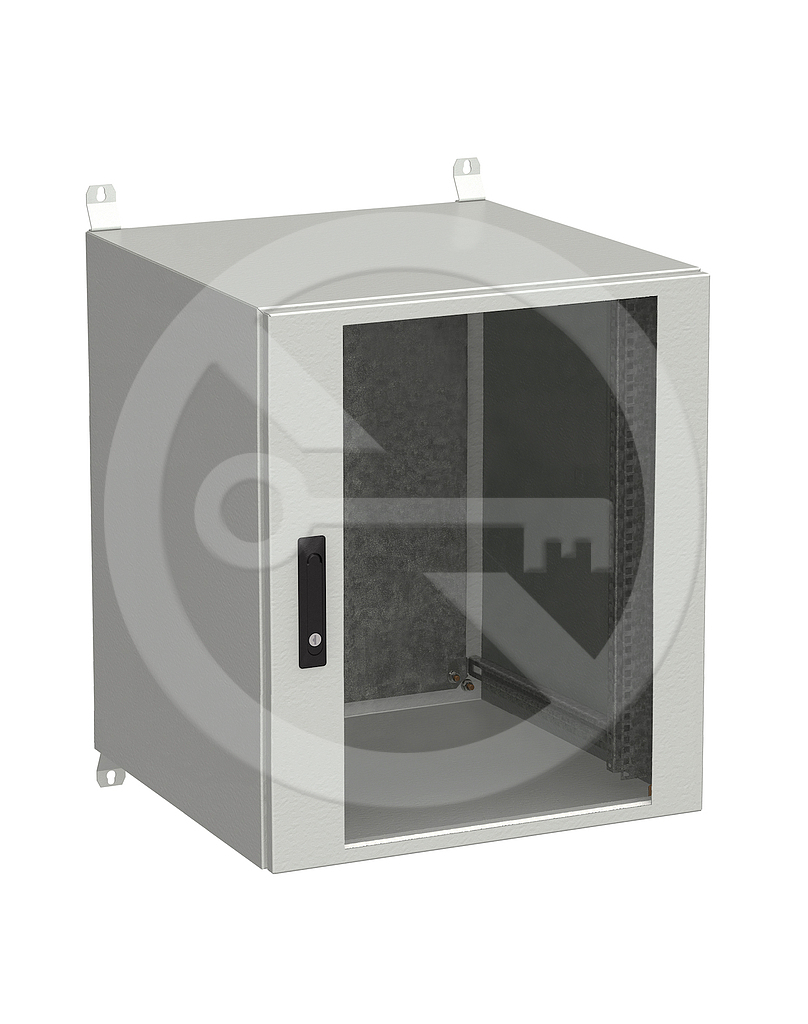 Rozvaděč tvoří samonosná svařovaná konstrukce z plechu tloušťky 1,5 mm, která je uzpůsobená pro připevnění na stěnu pomocí čtveřice dodávaných závěsů. Zajištění dveří proti otevření je provedeno pomocí jednobodových cylindrických zámků, nebo pomocí tříbodového zámku, výklopné kliky s vložkou. Z vnitřní strany dveří jsou přivařeny dva vertikální perforované rámečky, které zvyšují tuhost a zároveň slouží k vyvazování a uchycení výstroje skříně. Zemnicí propojení skříně je provedeno moderní technologií kapacitního navařování pokovenými šrouby. Těsnění dveří je provedeno technologií litého těsnění. Přístroje lze do skříně montovat na 19" lišty s pozinkovaného plechu. V zadní části rozvaděče je také upevněn montážní panel z pozinkovaného plechu síly 2 mm. 19" lišty i montážní panel lze nastavit plynule do požadované hloubky v rozvaděči.