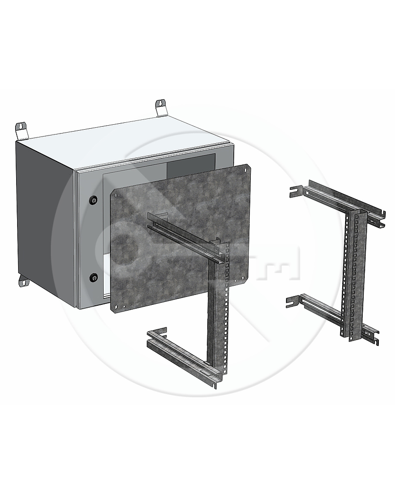 - 19“ vertikální lišty a montážní deska, vždy montována v dodávaném rozvaděči.