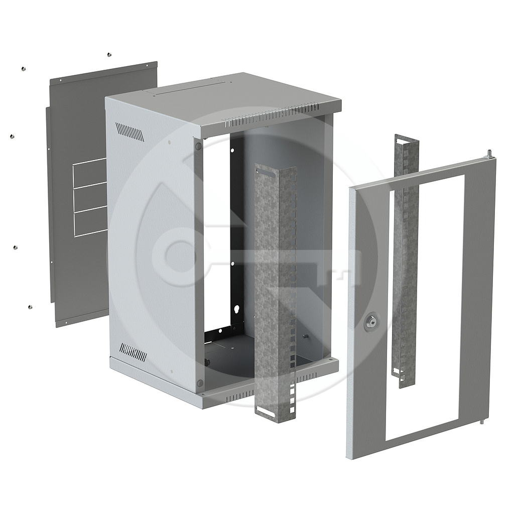 10" nástěnné rozvaděče jsou určeny pro instalaci prvků strukturované kabeláže malého rozsahu. Do standardní výbavy tohoto typu rozvaděče patří přední 10“ vertikální lišty, skleněné dveře se zámkem, perforovaný skelet pro lepší odvětrávání a kabelové prostupy ve spodní, horní i zadní části. Rozvaděč je symetrický a jednoduchým otočením lze dosáhnout pravého, nebo levého otevírání dveří. Dveře je pak možné dodat v provedení celoplechovém, nebo perforovaném. Standartní barevné provedení rozvaděče je šedá RAL 7035.