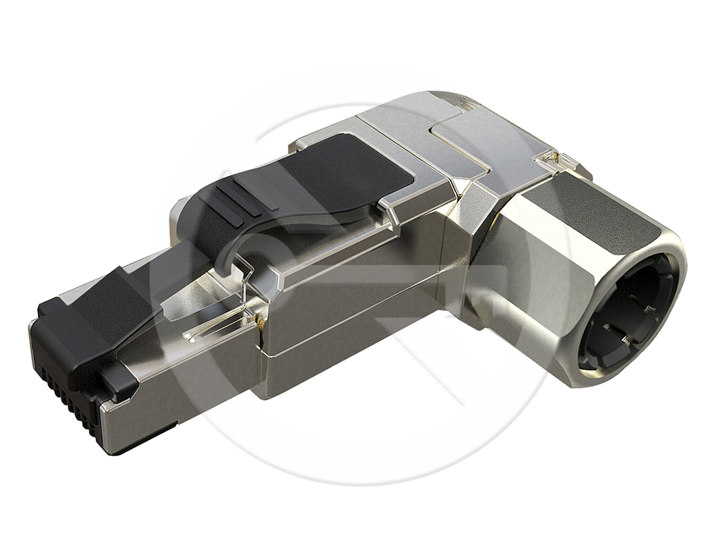 Vysoce kvalitní samořezný úhlový konektor RJ45 CAT6A pro vodič typu drát i licna vhodný pro STP ikabeláž.